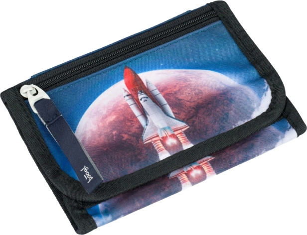 Носи се лесно благодарение на еластичната връв за закачане на врата, което позволява портмонето да е винаги под ръка, независимо дали сте на път или в училище. Ефектният мотив на космическата совалка и планетите придава игрив и приключенски вид, който ще се хареса както на деца, така и на възрастни.