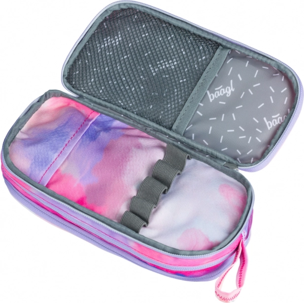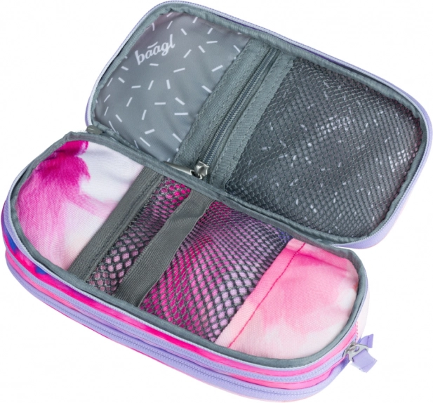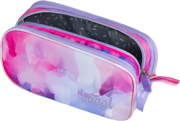 Пеналът Baagl Painting е изработен от качествен и здрав материал, гарантиращ дълготрайност. Разполага с три самостоятелно затварящи се отделения с цип, които осигуряват достатъчно пространство за вещите ви. Благодарение на прегледното вътрешно разпределение ще имате всичко под контрол и бързо ще намирате необходимото. Освен това е оборудван с практична халка/дръжка за лесно окачване или пренасяне.