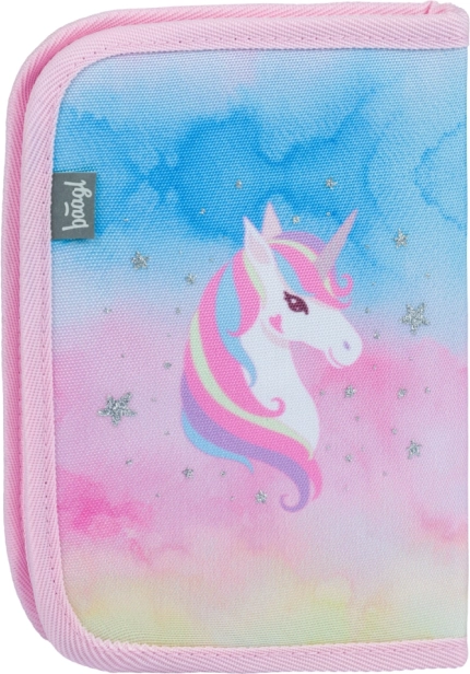 Стилен ученически несесер с мотив еднорог Rainbow Unicorn от BAAGL ще зарадва всеки ученик. Предлага прегледно подреждане благодарение на две клапи, качествен цип и издръжлива текстилна изработка. Идеален за ежедневна употреба в училище – практичен, лек и без пълнеж за собствен комплект писмени принадлежности.