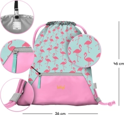 Тази торба за гръб от BAAGL е не само стилна, но и много практична. Отличава се с модерен дизайн с мотив фламинго и практични елементи: