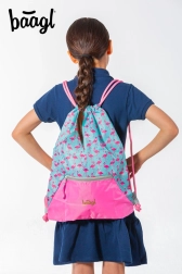 Стилна торба за гръб с мотив фламинго от BAAGL е идеална за носене на обувки или дребни предмети. Оборудвана е с практичен джоб с цип и карабинер за закачане към ученическа раница.