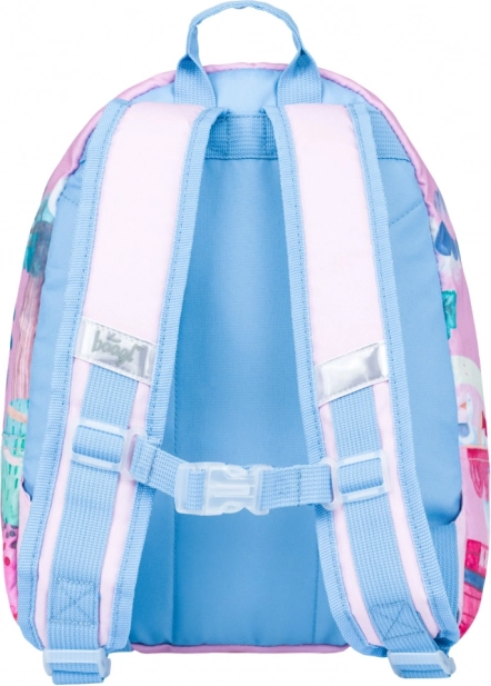 Удобна предучилищна раничка BAAGL с едно основно отделение и преден джоб, идеална за детската градина и за излети. Предлага здрава подплатена задна част, регулируеми подплатени презрамки, светлоотразителни елементи и издръжлив водоотблъскващ материал за ежедневна употреба.