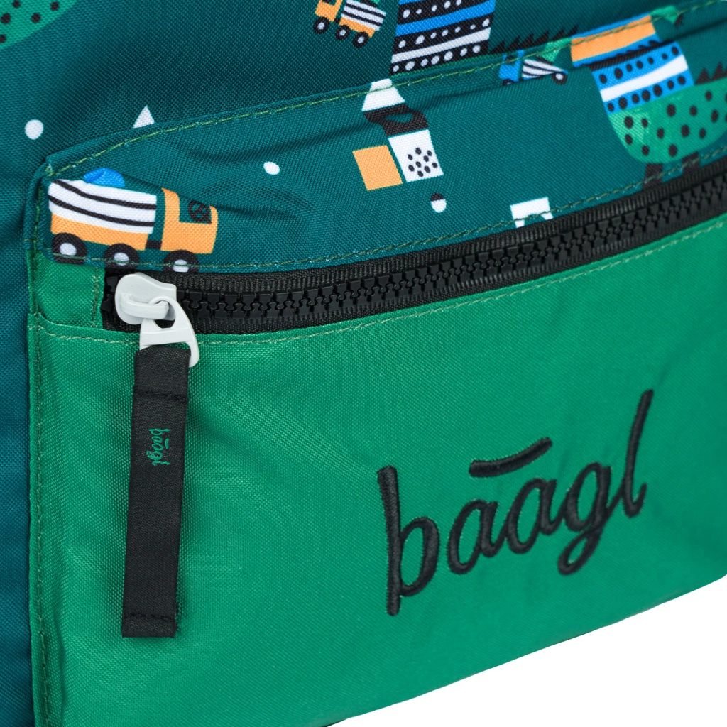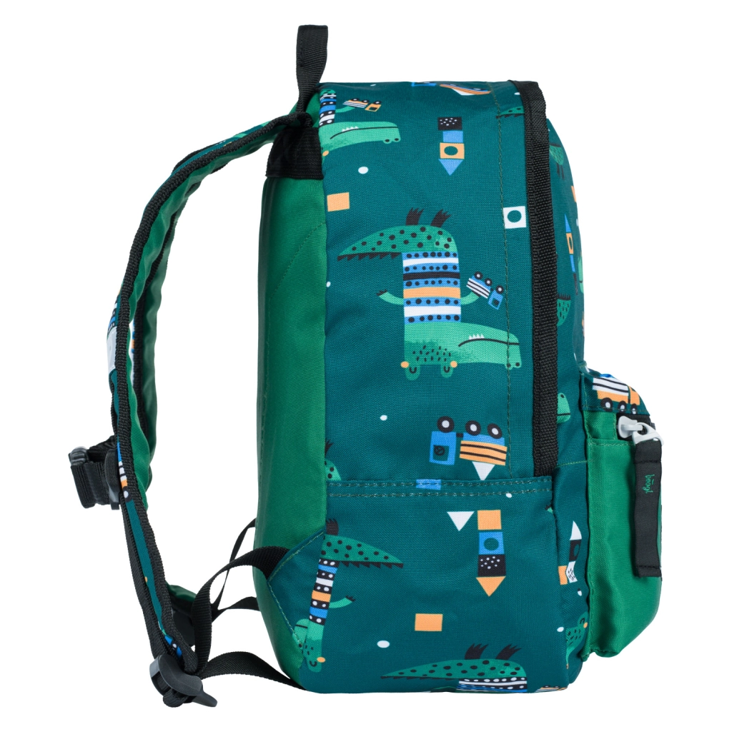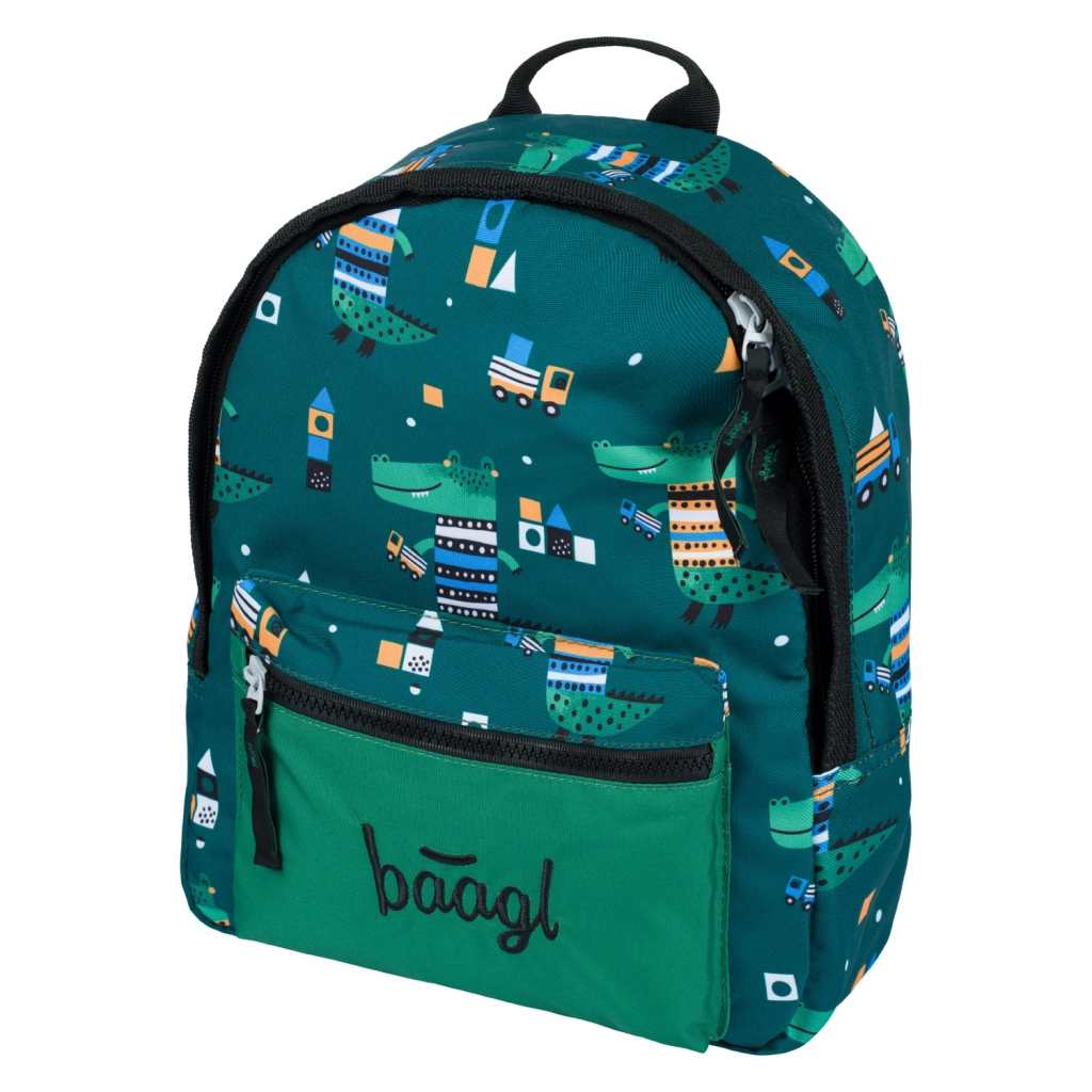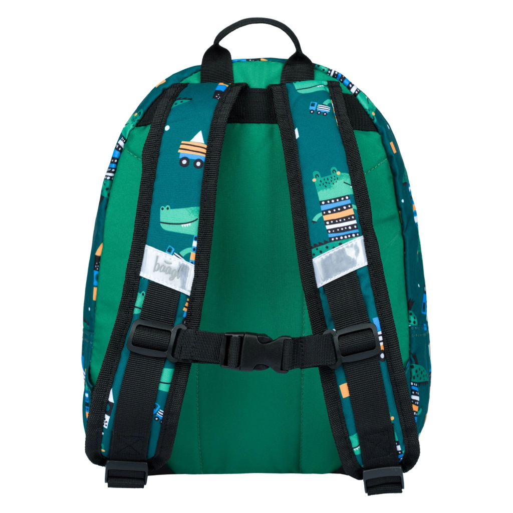 Лека и издръжлива предучилищна раница BAAGL с мотив крокодил за малки изследователи. Предлага едно основно отделение и практичен преден джоб, стабилен подплатен гръб, регулируеми по дължина подплатени презрамки, светлоотразителни елементи и е изработена от водоустойчив материал.