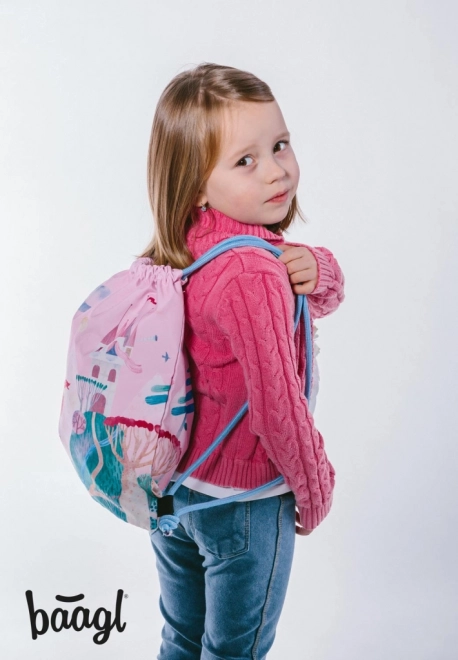 Практична и закачлива торбичка BAAGL с приказен мотив, идеална за пантофи, обувки и дребни вещи за занимания и свободното време. Изработена е от здрав, миещ се материал и благодарение на стягане с устойчиви връзки лесно се затяга и може удобно да се носи на гръб като раничка.