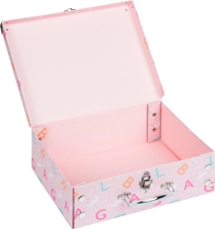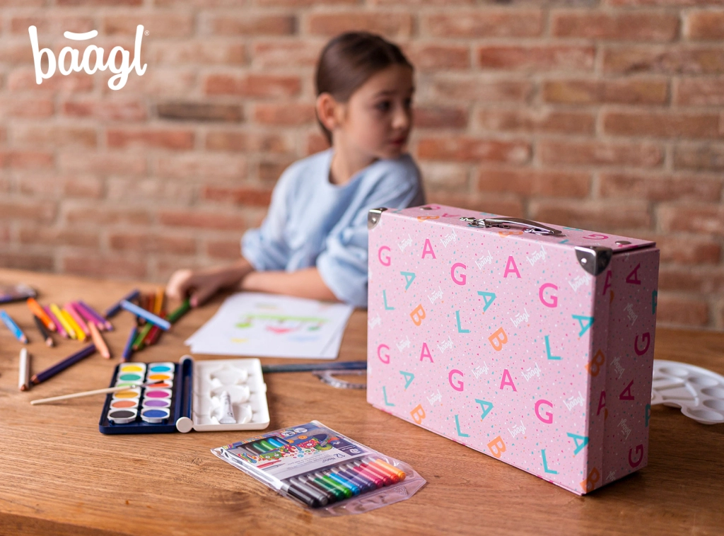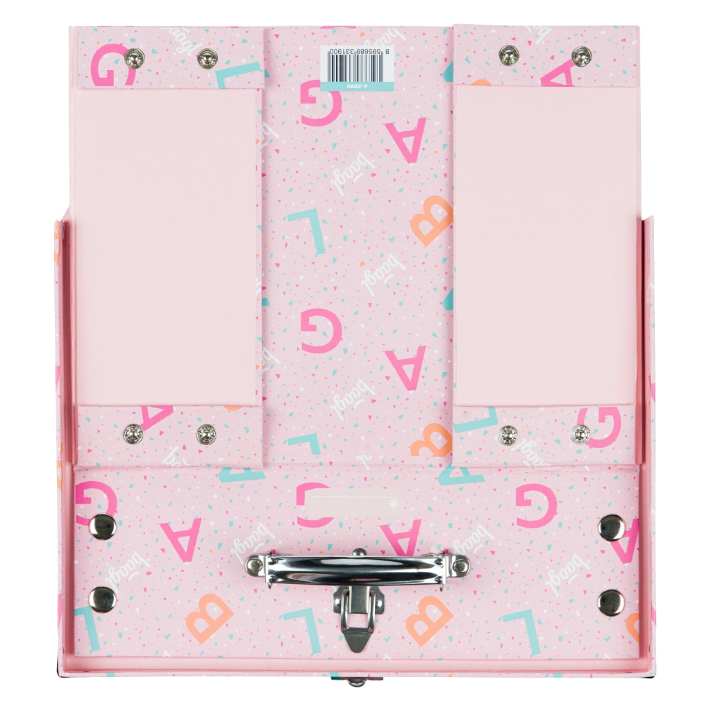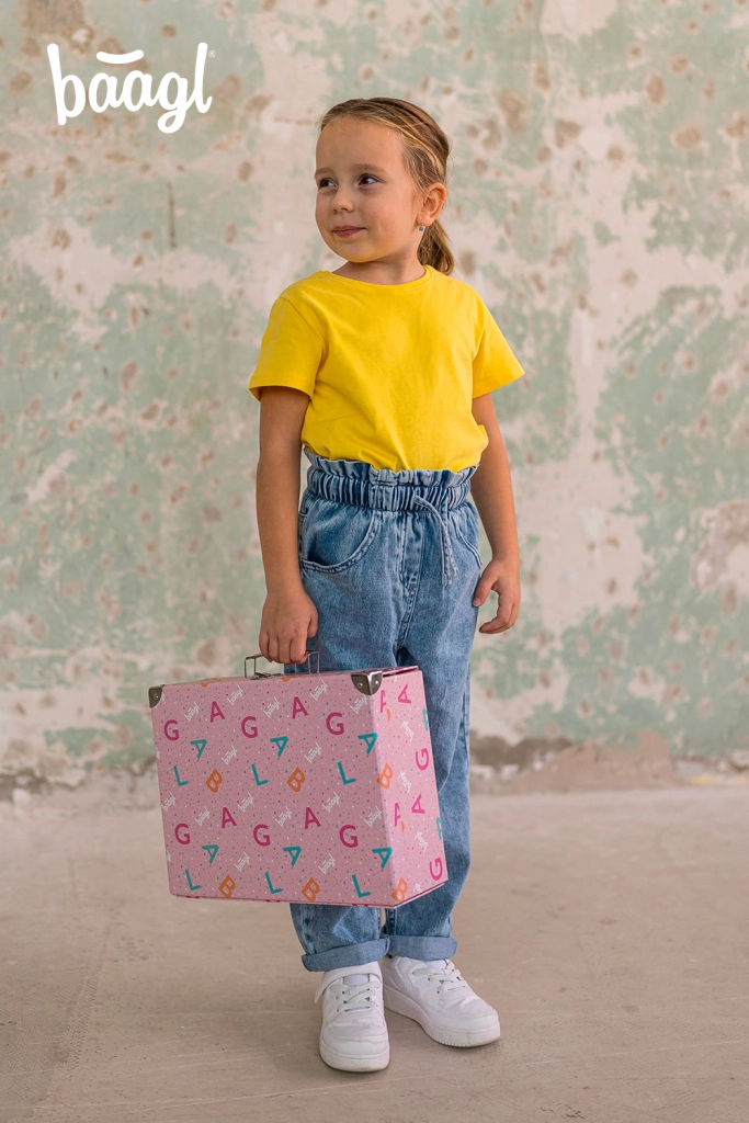 Сгъваемото куфарче BAAGL Logo в розов цвят съчетава игрив дизайн с практична функционалност. Здравият ламиниран картон и обкованите ъгли осигуряват дълъг живот, докато металната дръжка и надеждната катарама улесняват ежедневната употреба в училище и у дома.