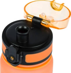 Капак тип flip-top с предпазител предотвратява нежелано отваряне в раницата и държи напитката надеждно вътре. Пиенето с една ръка е бързо и удобно.