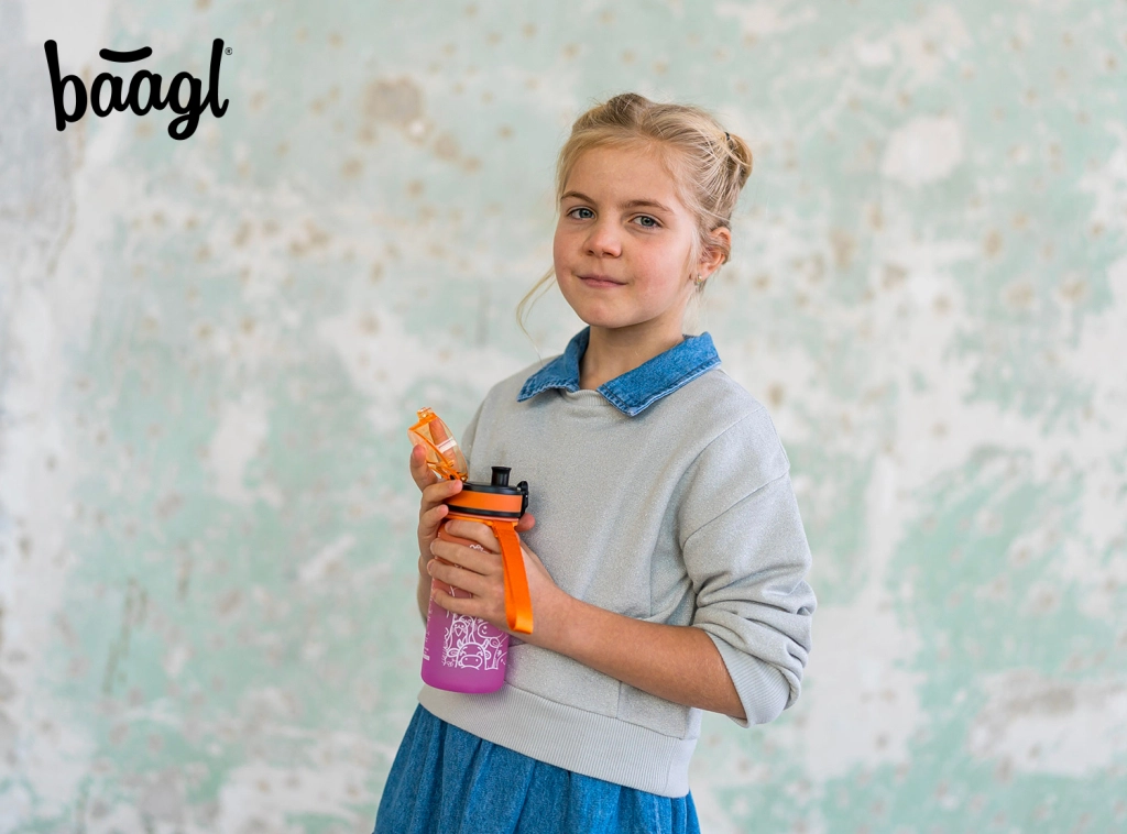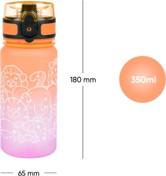 Тази детска бутилка от висококачествен тритан е идеална за училище, екскурзии и спорт. Благодарение на заключващия се капак няма да изтече нито капка, а практичното ремъче улеснява пренасянето. Атрактивният оранжево-розов градиент с животински мотиви ще се хареса на децата.