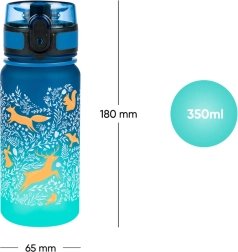 Стилна бутилка с мотив на горски животни, идеална за училище, екскурзии и спорт. Благодарение на качествения тритан е лека, издръжлива и здравословно безопасна опция за ежедневна хидратация. Заключващата се капачка надеждно предотвратява протичане, а интуитивният накрайник улеснява пиенето в движение.