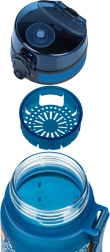 В комплект е подвижно сито, което позволява да приготвяте плодови лимонади и чай. Скала за обем помага да следите приема на течности, а практичната връзка осигурява удобно пренасяне. С използването на многоразова бутилка също така намалявате пластмасовите отпадъци от еднократни PET бутилки.