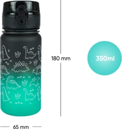 Практичната и стилна тританова бутилка за вода Baagl Gradient Dino с обем 350 мл е идеална за училище, излети и спорт. Предлага заключващ се непропусклив капак, практична каишка за носене и цедка за плодови напитки или чай. Изработена от сертифициран тритан без BPA, PVC и фталати, не оставя пластмасов привкус и е подходяща и за горещи напитки.