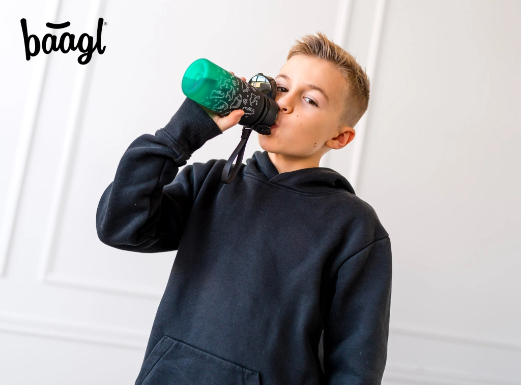 Бутилката Baagl Gradient Dino съчетава издръжливост, безопасност и игрив дизайн с динозаври в черно–тюркоазен градиент. Благодарение на висококачествения тритан е лека, безопасна за здравето и без мирис, така че запазва естествения вкус на напитките. Заключващият се капак с предпазител предпазва от протичане и позволява удобно, интуитивно пиене и за деца.