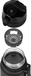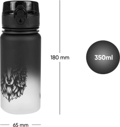 Стилна тританова бутилка с обем 350 мл, идеална за училище, излети и спорт. Предлага заключващ се капак против разливане, практично ремъче за носене и цедка за овкусени напитки. От висококачествен BPA-free тритан без мирис, подходяща и за горещи напитки.