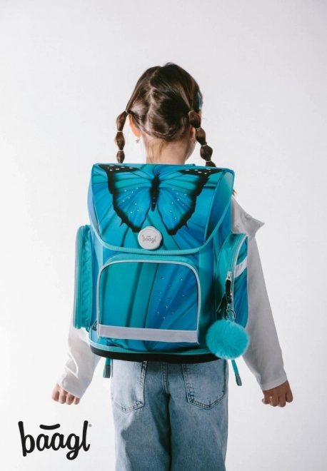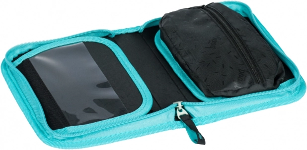 Пеналът предлага класическо разпределение с два капака и висококачествен цип. Торбичката с мотив пеперуда е чудесна за пантофи или други дребни вещи и може лесно да се закачи към раницата. Практичната кутия за храна е идеална за съхранение на обяд, докато защитните папки за тетрадки A4 гарантират, че документите остават подредени.