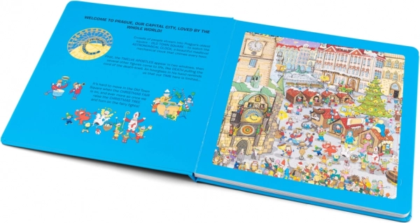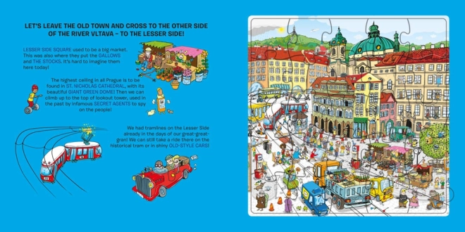 Практичен пример как вашите деца могат игриво да изследват Прага, редейки пъзели на всяка страница от книгата.
