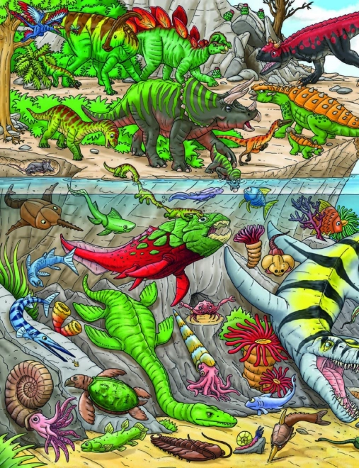 Тази голяма илюстрована книга отвежда малките читатели на пътешествие в праисторията, когато Земята е била управлявана от динозаври. Децата ще опознаят видове, които са живели на сушата, под водната повърхност и във въздуха, и ще разберат как са се различавали по начина си на живот – от храненето, през защитните стратегии, до грижата за малките.