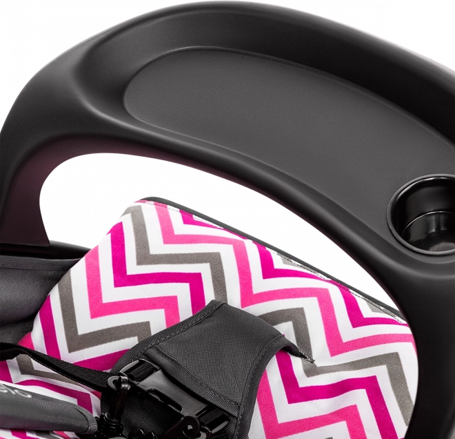 Безопасността е приоритет: петточкови колани с меки подложки, бариера с табличка и държач за чаша, както и тестване по стандарт EN 1888 (лаборатория SGS) дават сигурност при ежедневна употреба. Маневрените EVA колела с меко окачване на предния мост омекотяват неравностите, лесно се справят в градска среда, а заключването за прав ход поддържа стабилна посока върху настилка.