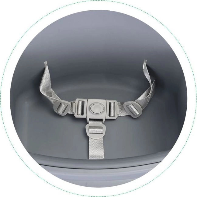 Металните крака с неплъзгащи пети, ограничител срещу плъзгане и 3-точкови колани осигуряват безопасно седене на вашето дете.