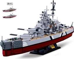 Сглобете легендарния бойен кораб BISMARCK в мащаб 1:350 от конструктора Sluban ModelBricks с 1849 елемента. Реалистичен модел с приблизителна дължина 75 cm и височина 23 cm от издръжлива ABS пластмаса, който ще зарадва взискателните строители. Включени са печатни инструкции и стикери; кубчетата са съвместими с Lego, Cobi и Mega Bloks.