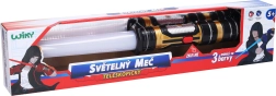 Открийте магията на светлинния телескопичен меч, който не само свети, но и сменя цветовете между червено, синьо и лилаво. Изненадайте противниците си и се насладете на часове забавление с този уникален меч.