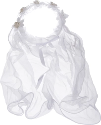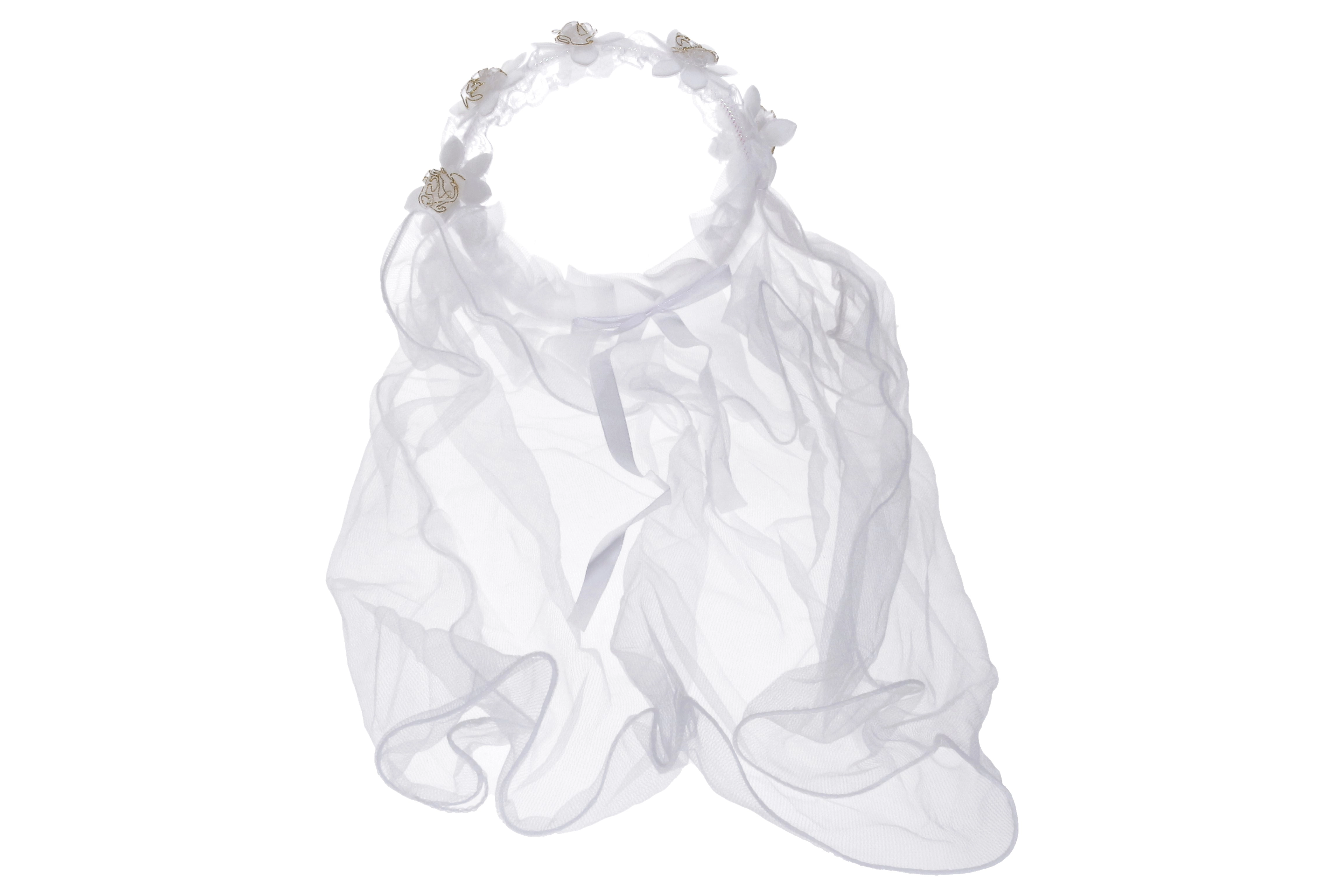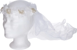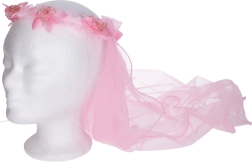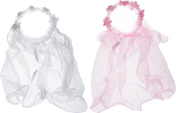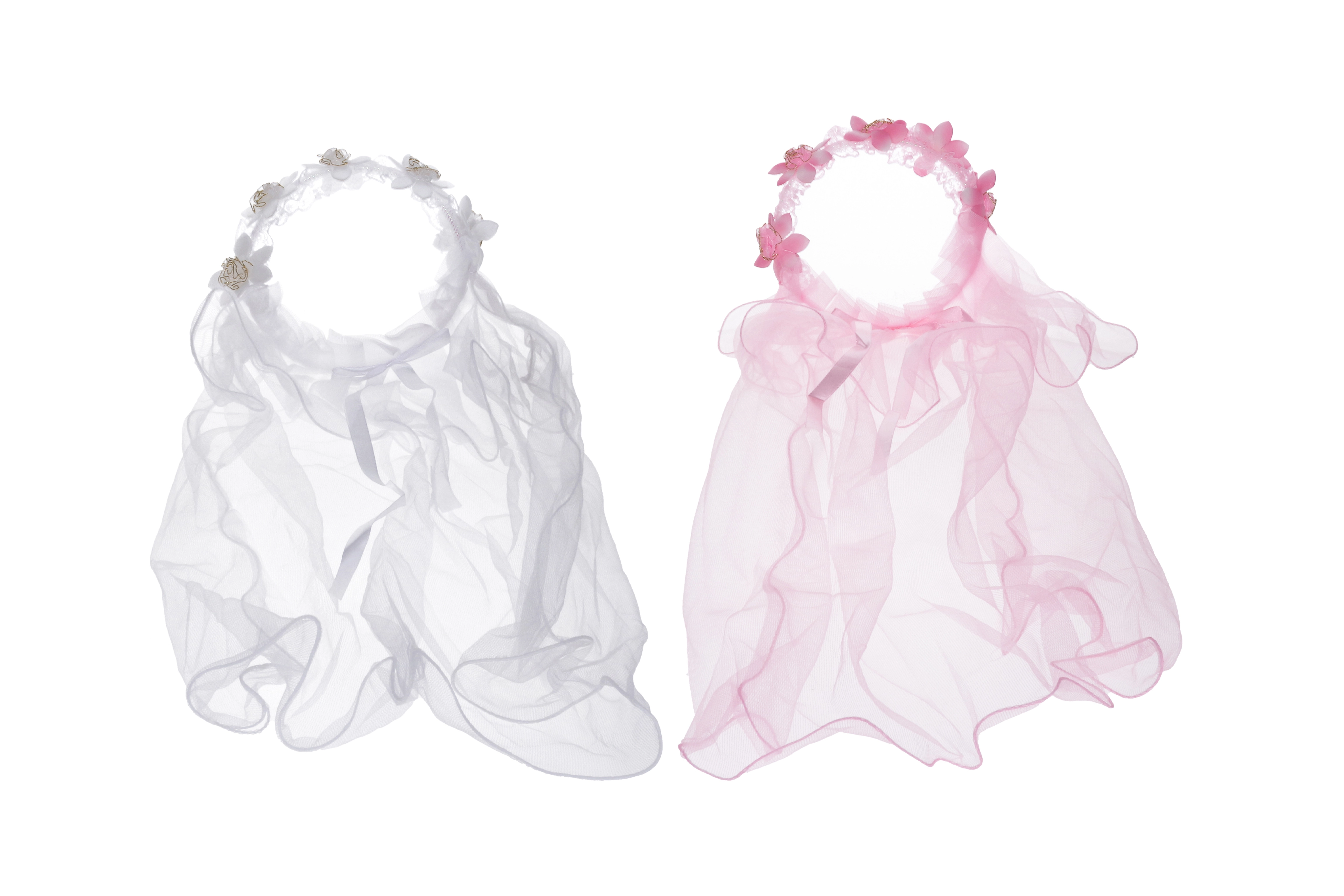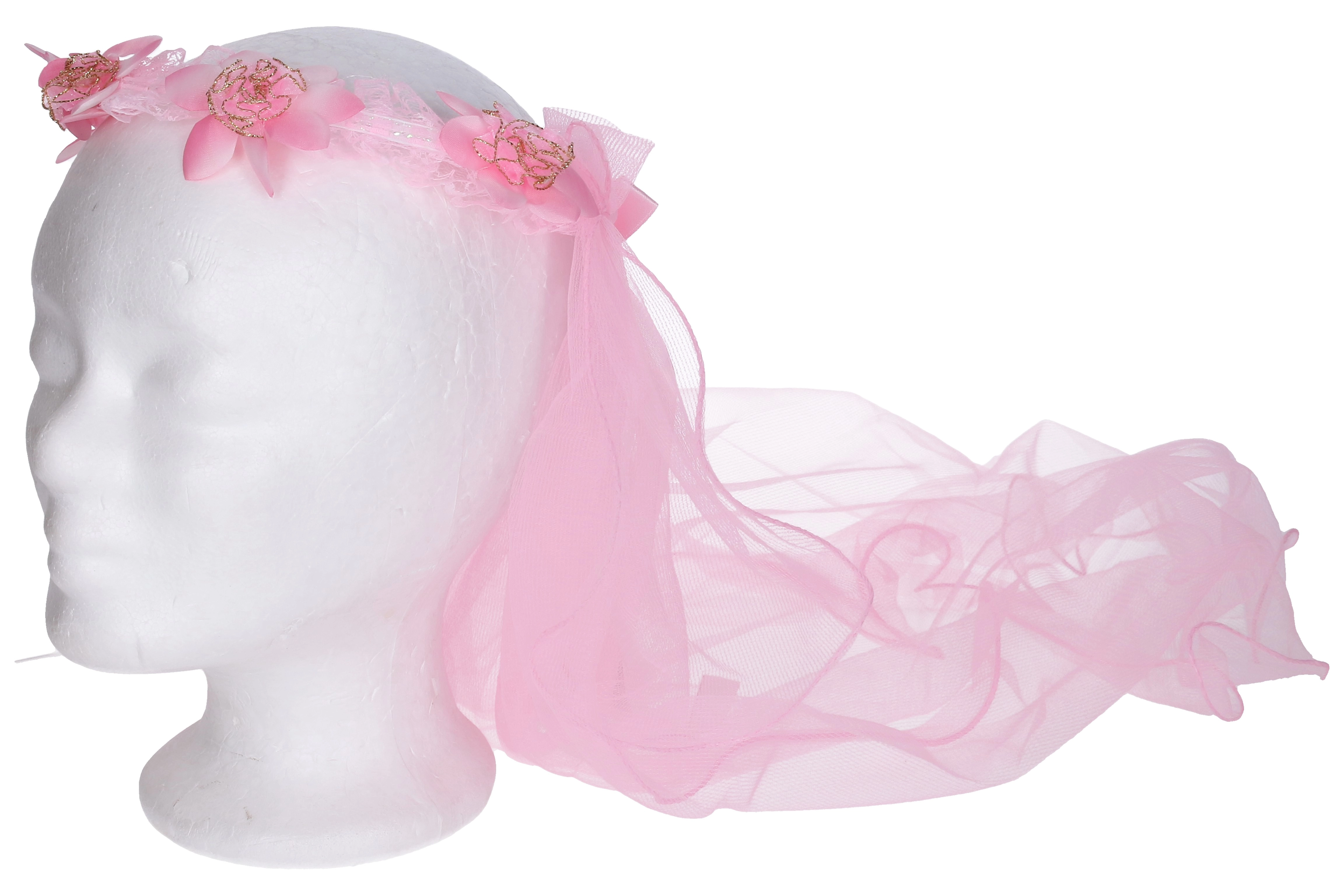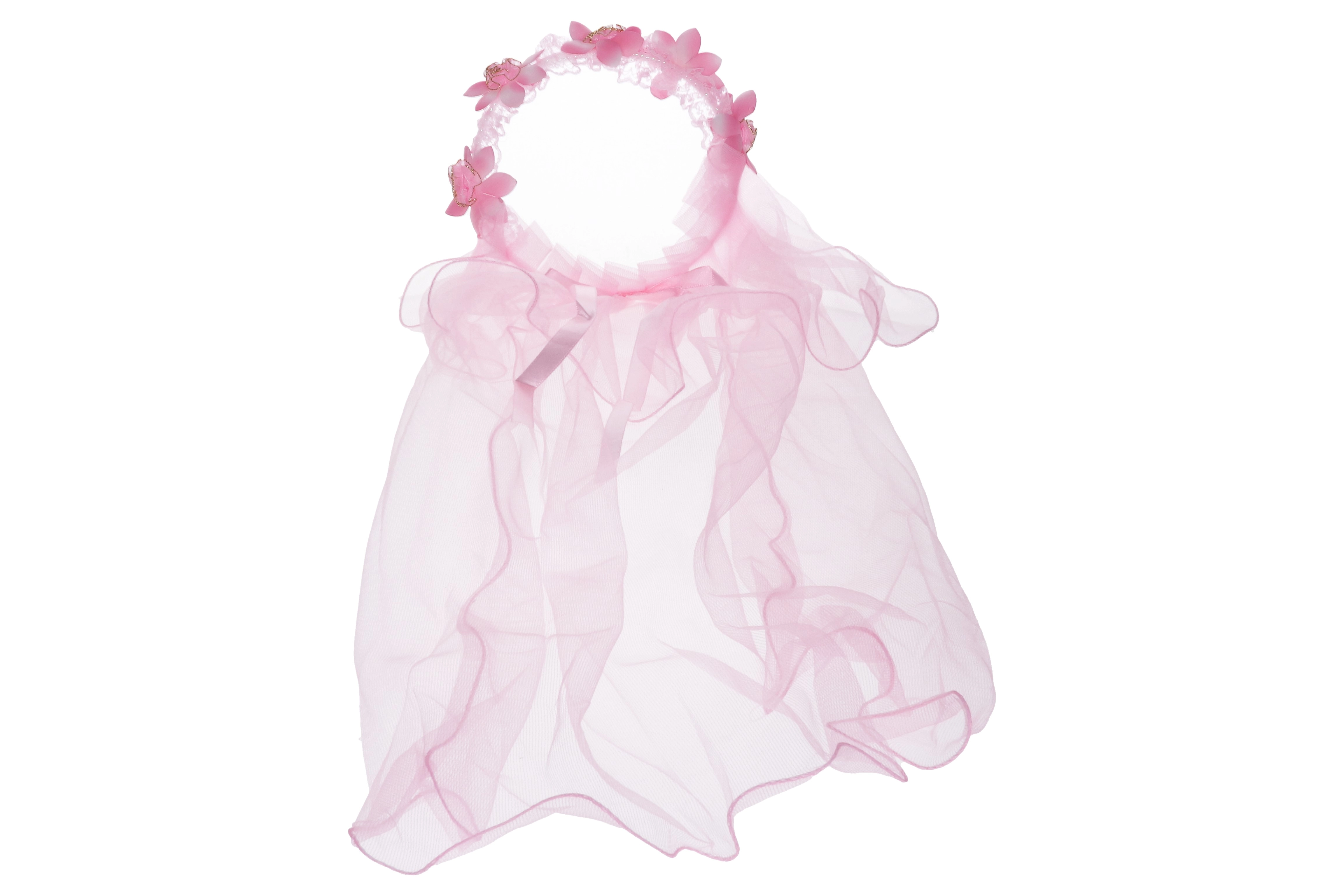 Тази стилна диадема с воал мигновено превръща малката принцеса, фея или булка. Нежният, прозрачен тюл се вълнува красиво, а цветните детайли придават на аксесоара романтична визия. Благодарение на лекия материал и еластичното закрепване се носи удобно през целия ден.