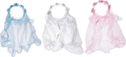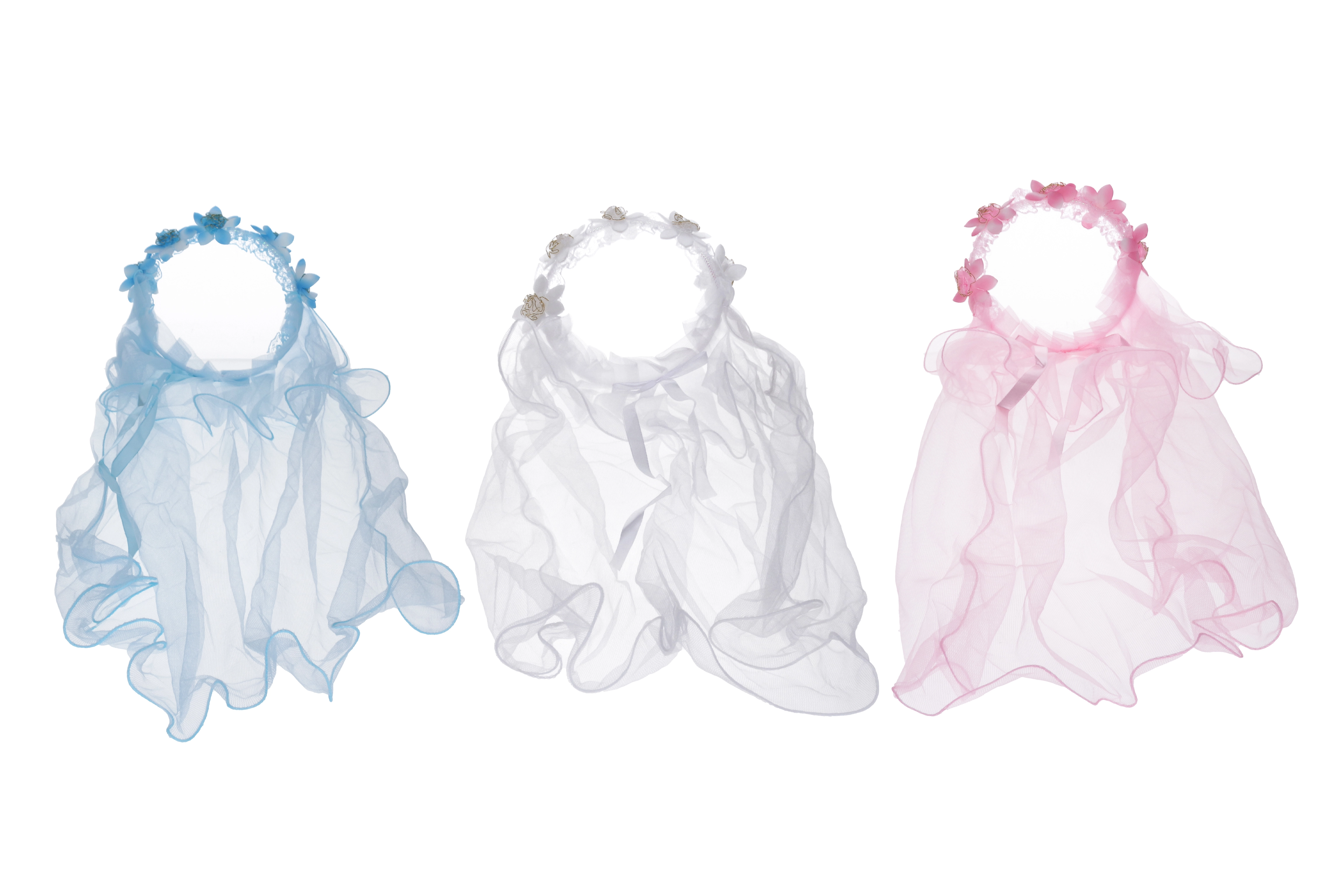 Изберете от различни цветове (бял, розов, син) и завършете костюма според настроението. Воалът с дължина около 55 см нежно пада по гърба и създава елегантен, плавен ефект както на снимки, така и в движение.