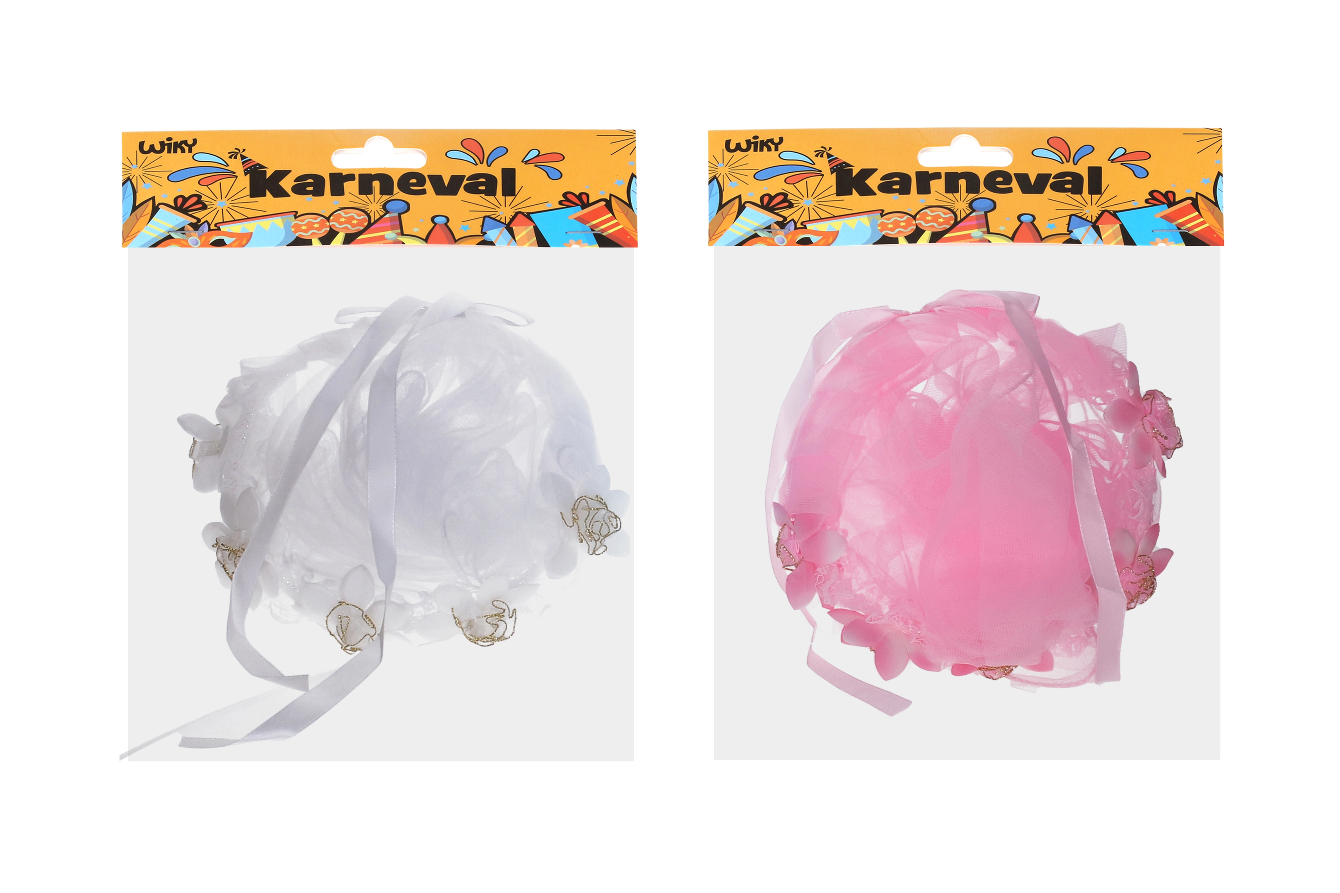 Елегантна карнавална диадема със воал, която придава на всеки костюм нотка приказна магия. Лекият тюл, цветната украса и удобното закрепване я правят идеален аксесоар за карнавал, празненства и фотосесии. Предлага се в 3 цветови варианта и с воал с дължина 55 см за очарователен, ефирен ефект.
