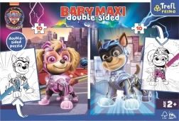 Пъзел Макси 2x10 включва две големи подредби, разделени на 10 едри части, което е идеално за деца от 2 години. Всеки пъзел е двустранен – от едната страна има цветна картина с любимите герои от анимационния сериал Пес Патрул, а от другата – голяма страница за оцветяване.
