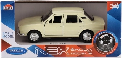 Колекционерски модел на Škoda 105 L в мащаб 1:34–39 с вярно пресъздадени детайли, метална изработка с пластмасови елементи и отварящи се врати и багажник. Моделът има свободен ход, боядисан е с оригинален автомобилен лак и е подходящ както за деца от 3 години, така и за запалени колекционери.