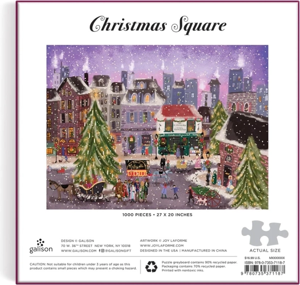 Насладете се на мигове на спокойствие и носталгия с този коледен пъзел, който предлага детайлен поглед към коледното селце. Благодарение на високия дял рециклирана хартия и безвреден печат с матово покритие са гарантирани високо качество и вярно възпроизвеждане на цветовете. Пъзелът е опакован в качествена кутия от устойчиви материали със сертификат FSC®. В комплекта ще намерите и ориентировъчно изображение за по-лесно подреждане.