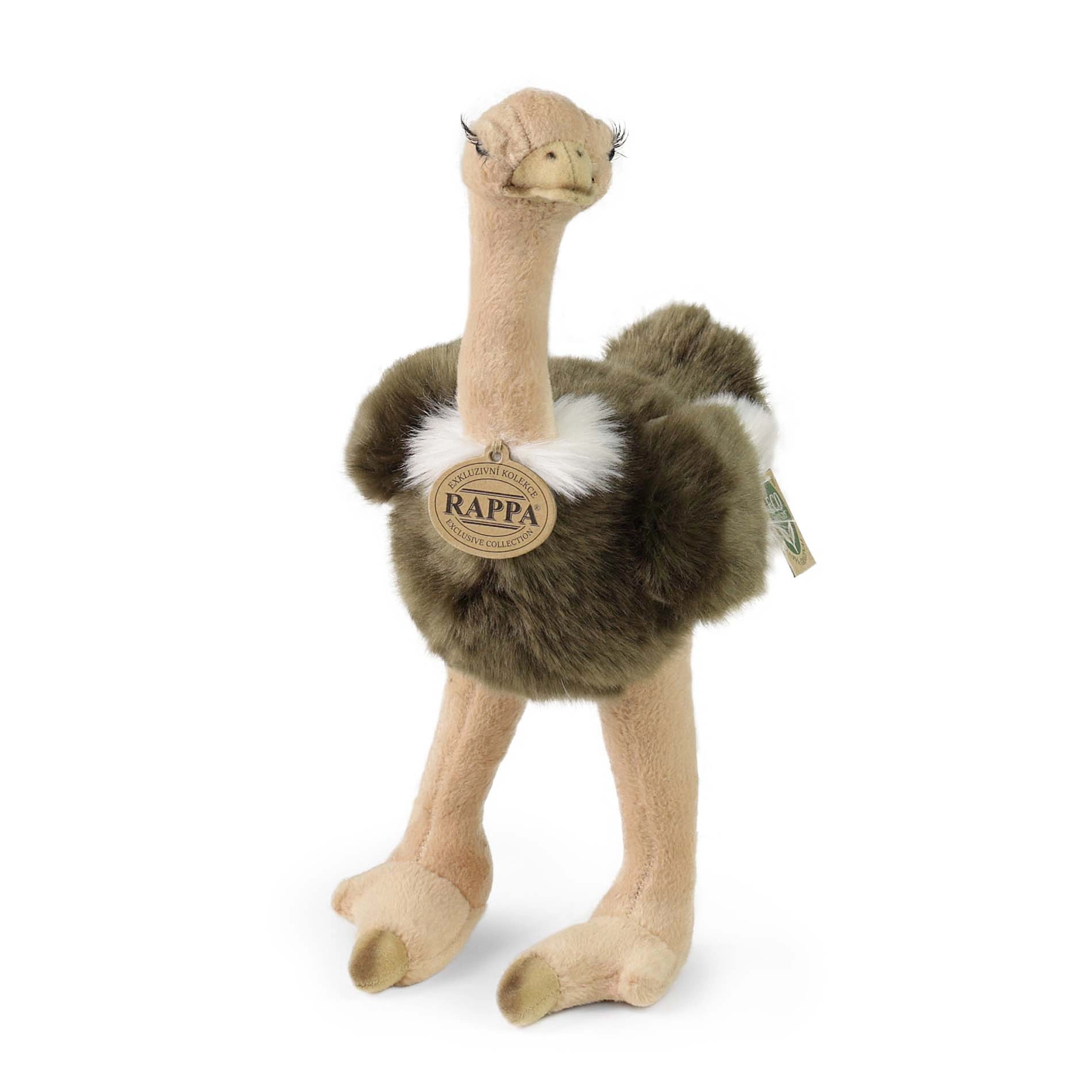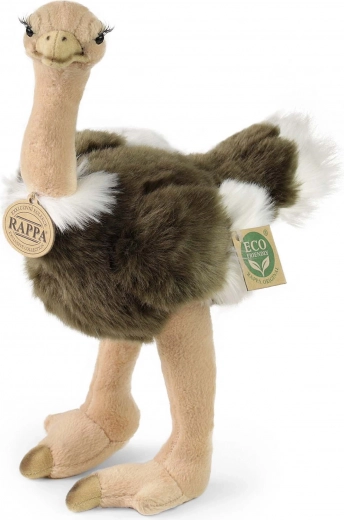 Очарователен плюшен щраус с височина 32 см, изработен от качествена, мека козинка и с пълнеж от рециклирани PET бутилки. Неговото меко тяло, дълги крака и реалистични детайли го правят идеален другар за гушкане и екологичен избор за отговорни родители.