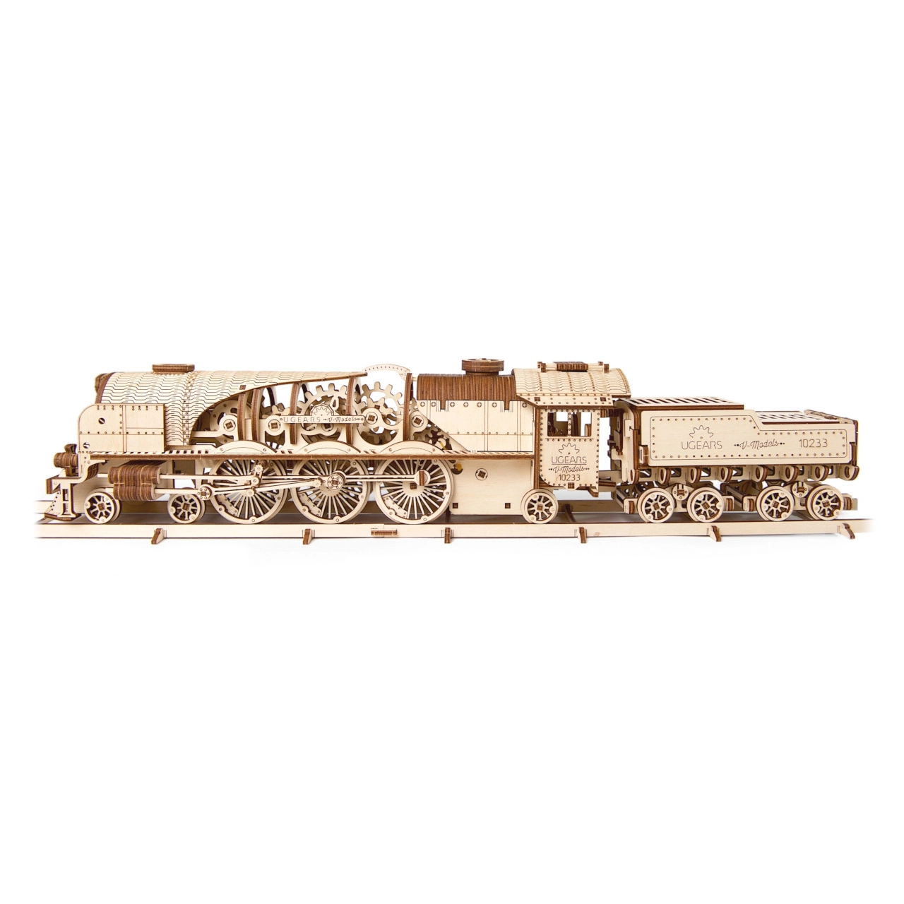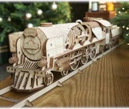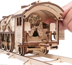 UGEARS V-Express е изключителен дървен модел за взискателни почитатели, който съчетава магията на класическата железница с умна механика. Откритата „обшивка“ на локомотива позволява да наблюдавате работата на предавките, зъбните колела и коляновия механизъм в действие. Благодарение на навиващия се мотор моделът наистина потегля и предлага реалистично изживяване при движение, включително свободен ход и задна предавка.