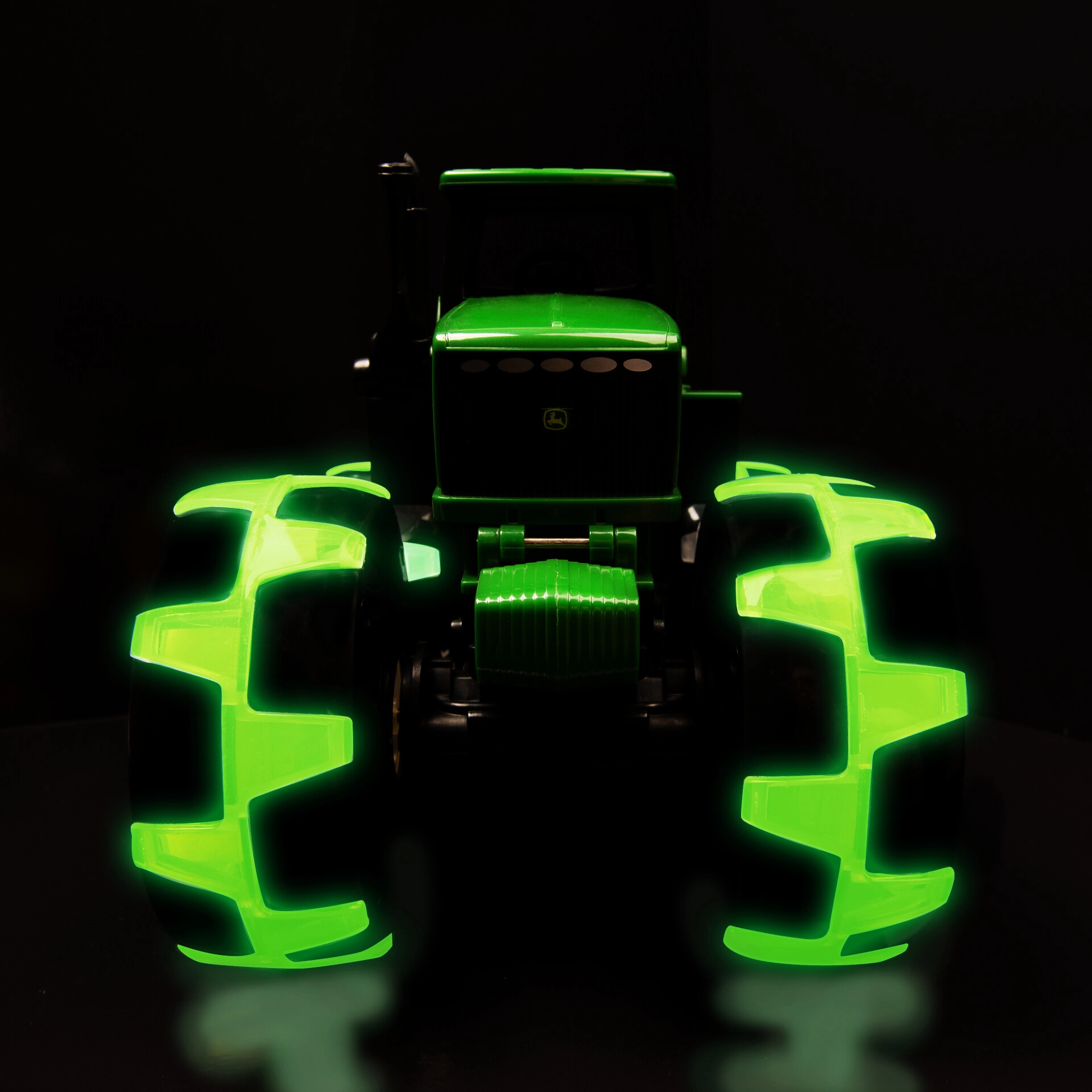 Забавният трактор JOHN DEERE Monster от марката Tomy впечатлява деца и родители с големите си прозрачни колела, които при движение мигат със зелена светлина. Здравата пластмасова изработка, вярните детайли на истински трактор и лесното движение по равни повърхности правят играчката чудесен спътник за ежедневна игра.