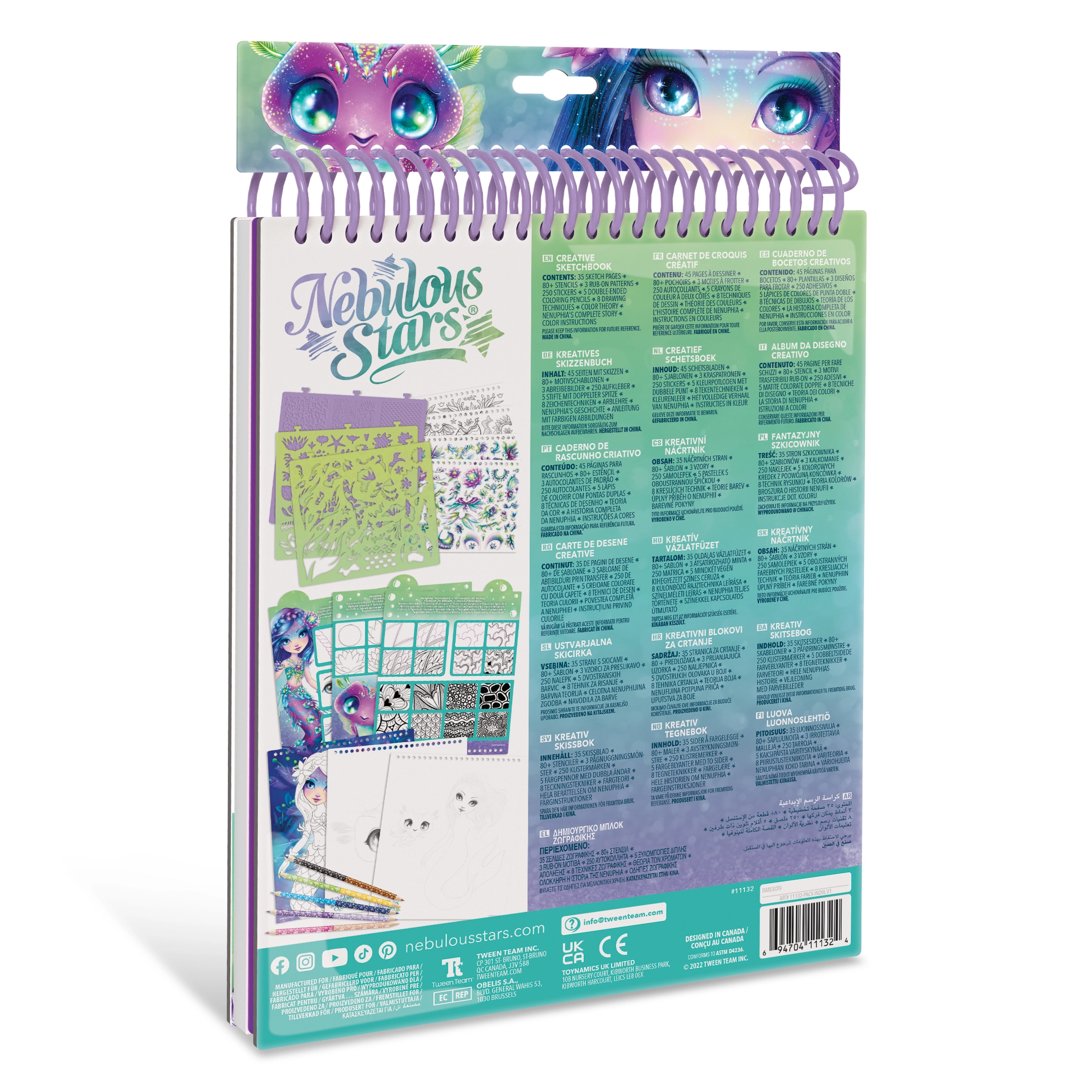 Креативният скицник Nebulous Stars Nenuphia е идеален за малки артисти, които обичат фантазията и цветовете. Съдържа 35 страници за създаване, над 250 стикера, 80 шаблона, 3 листа с текстури, 5 двустранни молива и 8 примера за техники на рисуване. Благодарение на теорията на цветовете и историята на персонажа Nenuphia развива креативността, фината моторика и въображението.