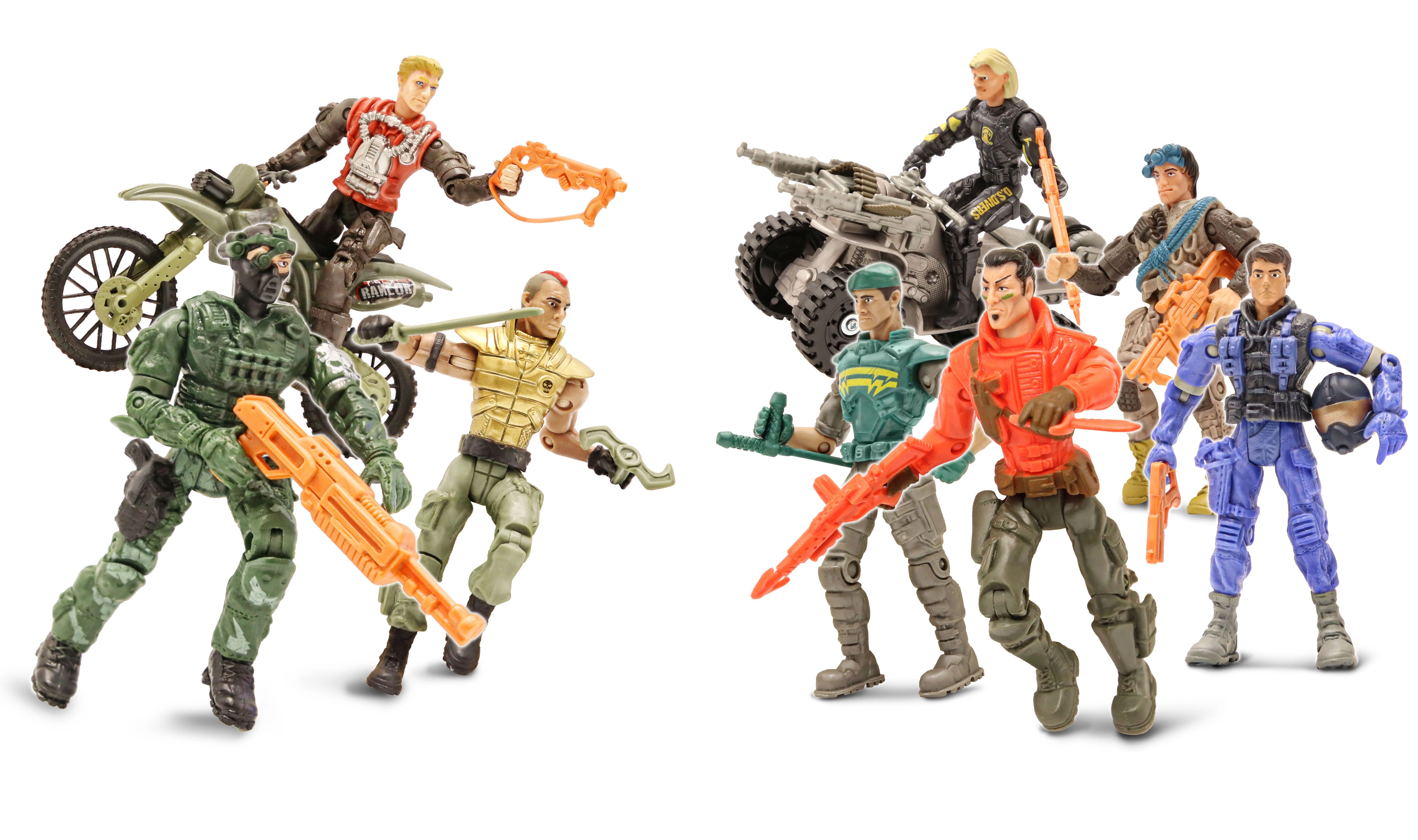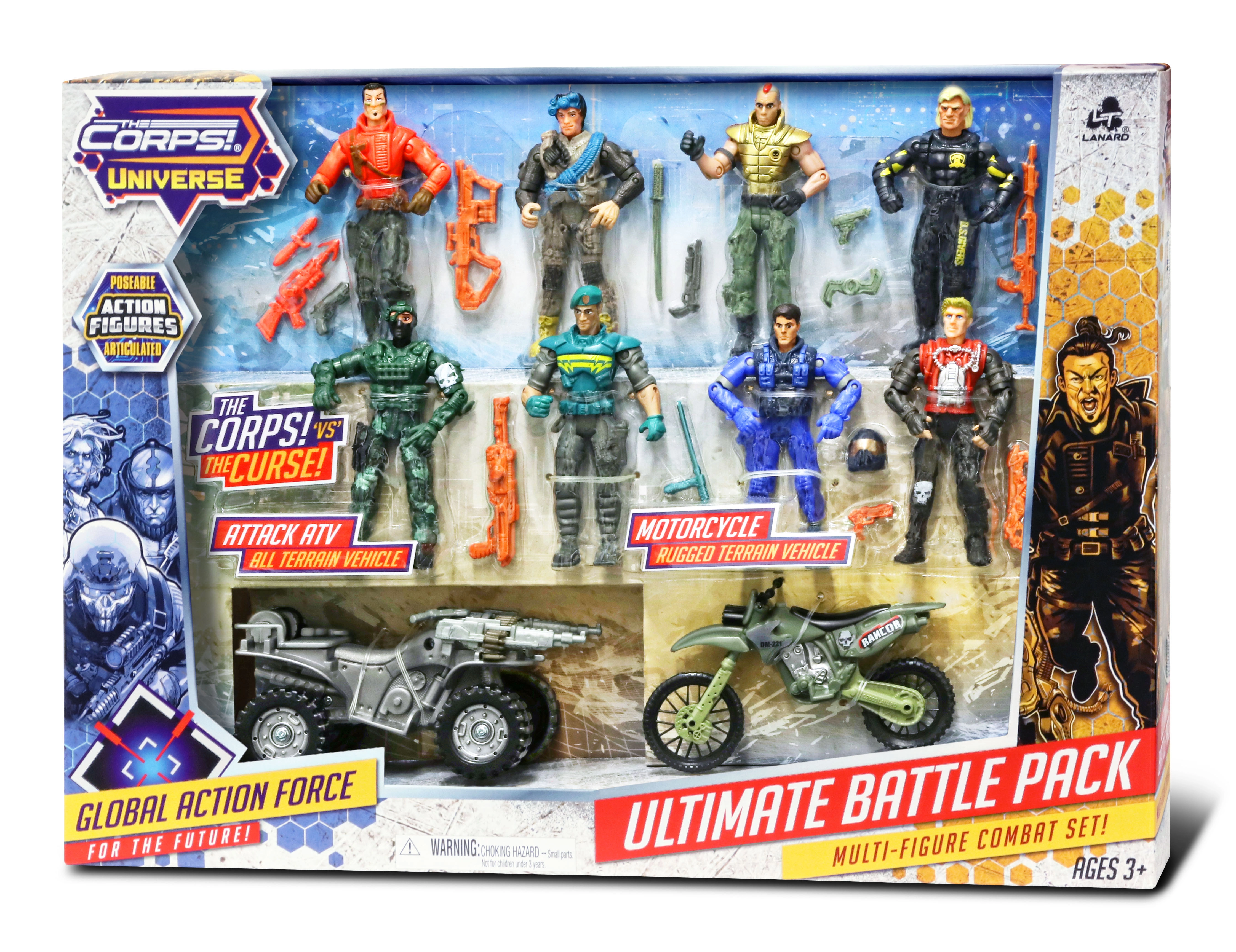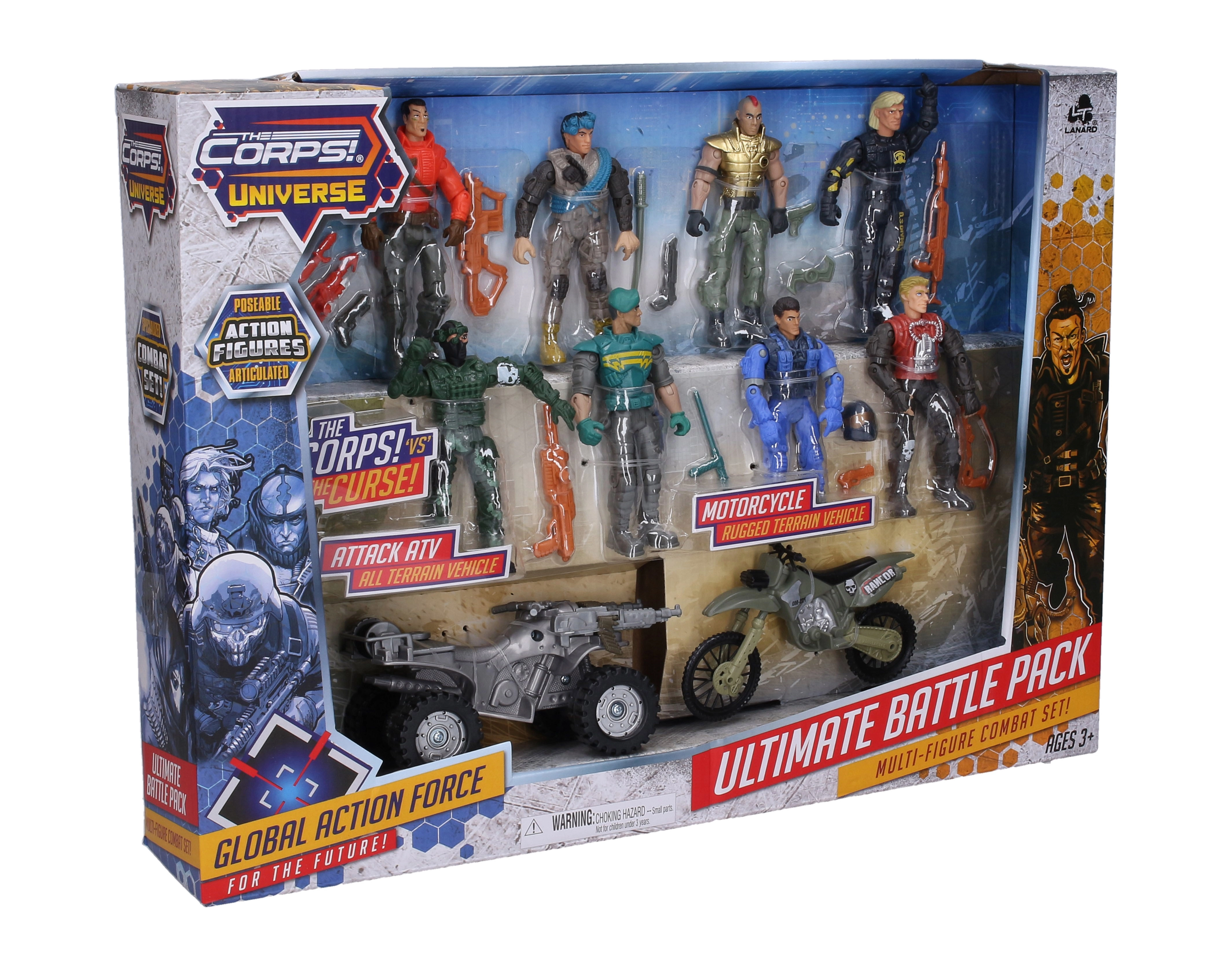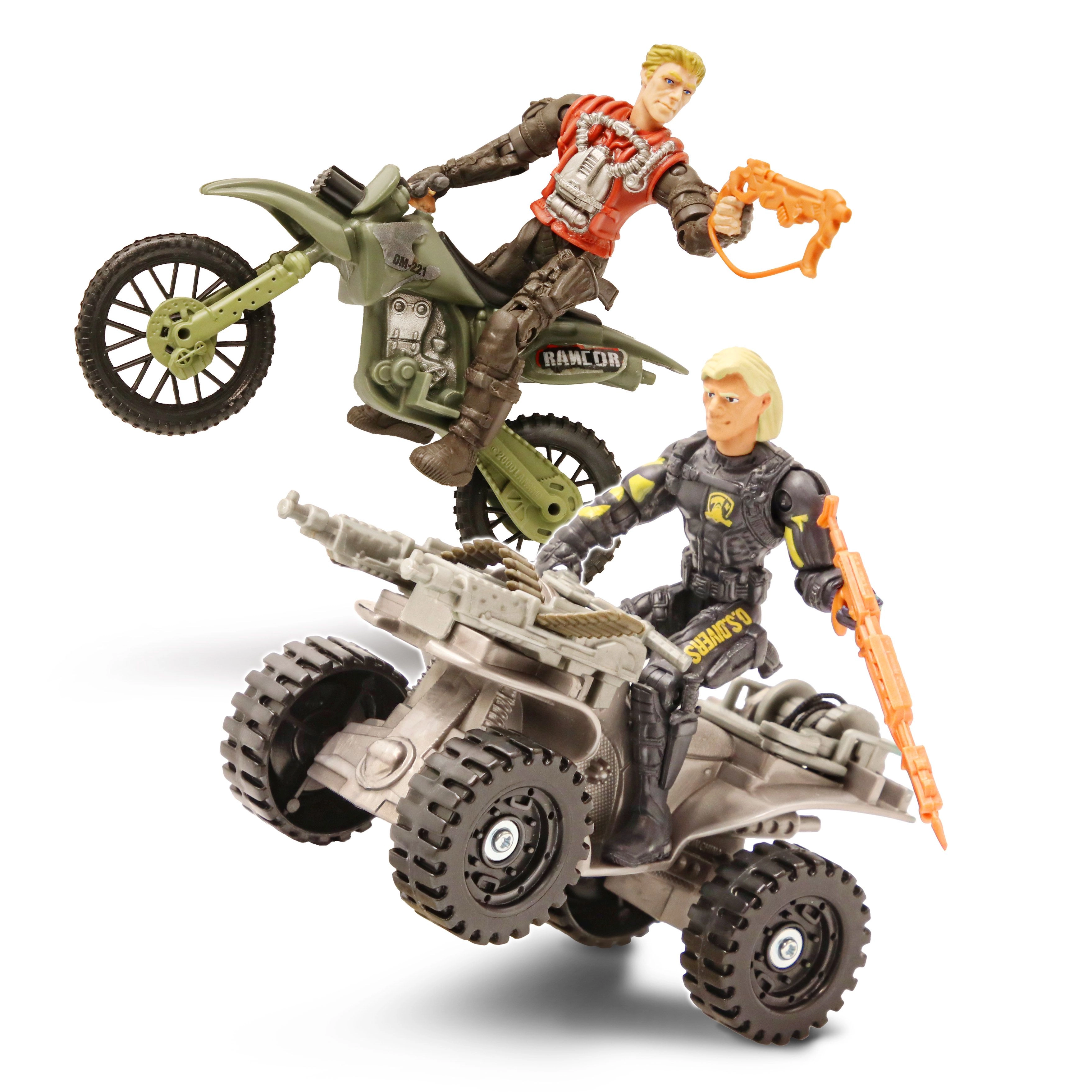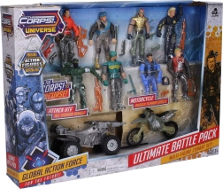 Екшън комплект за малки приключенци: The Corps предлага сет от 8 детайлно изработени войници с височина 11 см, допълнени с превозни средства за динамични мисии. Включени са мотор 13 см и ATV четириколка 14 см, които гарантират вълнуваща игра и дълги часове забавление.