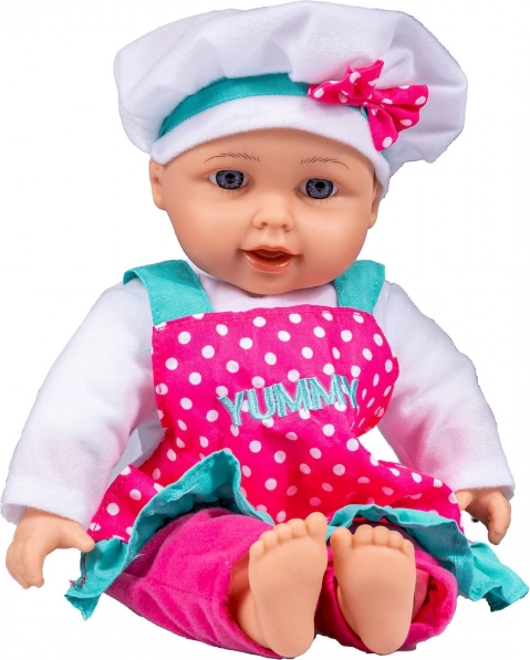 Кукла готвачка Юлка носи не само радост от готвенето, но и учи децата на основите на здравословното хранене. С натискане на бутона на коремчето куклата: