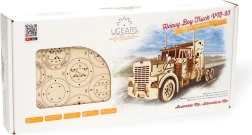 UGEARS Heavy Boy VM-03 е реалистичен модел на американски влекач от висококачествен шперплат, който ще впечатли почитателите на механиката, моделирането и дизайна. Благодарение на интелигентния гумен навиващ се привод моделът може да се движи самостоятелно – над 4 метра с едно навиване. Детайлната механика позволява да се наблюдава работата на двигателя, включително движението на буталата.