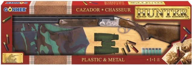С този комплект Gonher ще получите автентично изживяване от лова. Пушката има пластмасов приклад и цев, докато средната част и спусковият механизъм са метални. В патроните можете да поставите капси, за да постигнете по-силен изстрел.