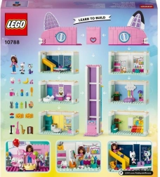 Потопете се в света на забавленията с LEGO Къщата на Габи, предназначена за деца от четири години. Тази многоцветна къща предлага осем различни стаи, свързани с плъзгащ се асансьор. Децата могат да пекат в кухнята, да се пързалят в стаята за игри, да творят в ателието или да се забавляват на парти на покрива. Преживейте приключения с популярни герои като Габи, Кици Панду, Лакомко и Сиренкотка.