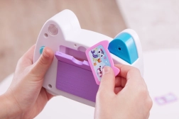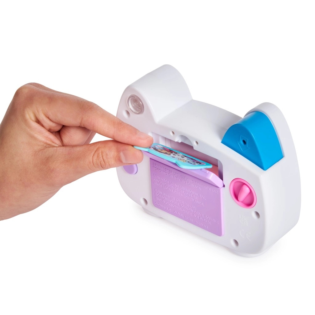 Влезте в света на фантазията с игрален фотоапарат Kitty Camera от Габиният магически дом. Децата могат да вмъкват три пластмасови „снимки“, да гледат през визьора и при натискане на бутона да наблюдават как котенцето мига и „изплюва“ изображение. Реалистични елементи като цветни бутони за натискане и колелца за въртене правят тази играчка идеален избор за предучилищна възраст.
