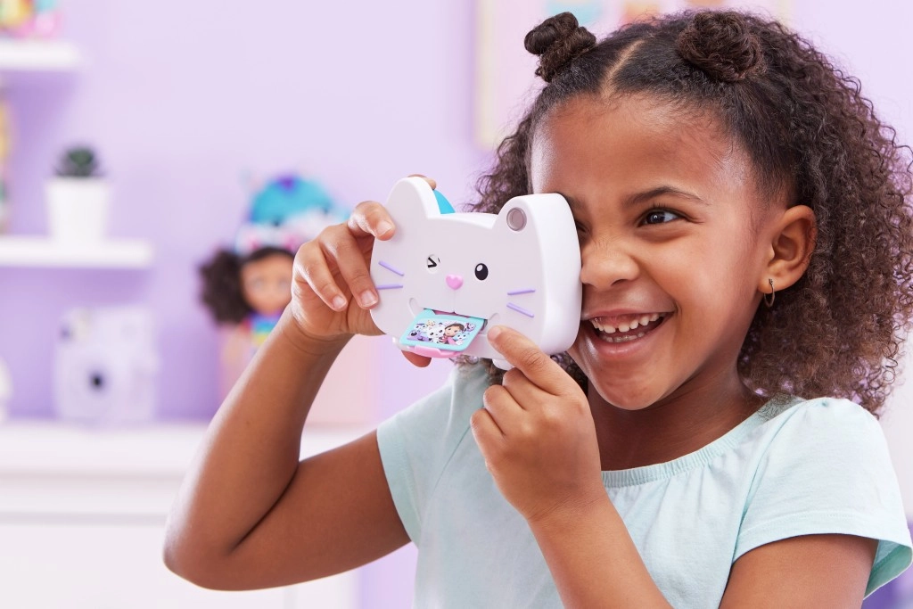 Погледнете през визьора, натиснете бутона и наблюдавайте как котенцето мига и от устата излиза пластмасова снимка – точно като в света на Габи.