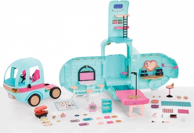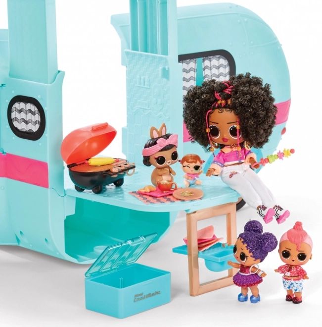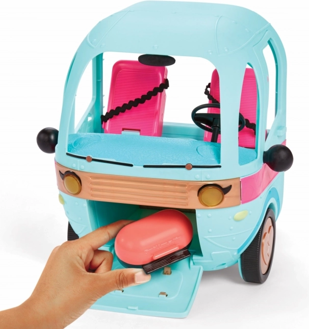 Glam N Go кемперът обединява свят на мода, забавление и къмпинг в едно. След разгъване разкрива игрова зона с легло, тоалетка, басейнче и грил – точно каквото децата търсят за своите пътешествия. Благодарение на вниманието към детайла и живите цветове играта с кукли е напълно завладяваща.