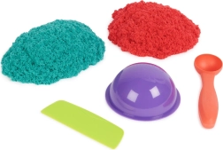 - 680 г кинетичен пясък (2 цвята: син и червен), 3 аксесоара (купичка, ножче, лъжичка)