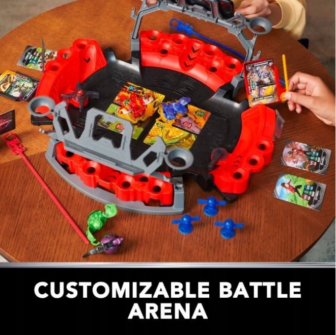 Арената включва ексклузивен DRAGONOID със специална атака (въртене) и XL издърпващо въже за максимален ефект. Лесно съхранявайте, обръщайте и излагайте Bakugan на поставката и заснемайте битките благодарение на вградения държач за телефон. Включени са колекционерски карти и игрови код за Roblox за нови възможности за игра и взаимодействие.