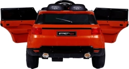 Стилна детска електрическа кола Start Run в SUV форма в оранжев цвят предлага безопасно шофиране, реалистично LED осветление и богат аудио панел с MP3, USB, SD и AUX. Два мотора 2 × 30 W, плавен старт, отварящи се врати с блокировка и родителско дистанционно 2,4 GHz с три скорости и бутон STOP осигуряват забавление и контрол.