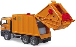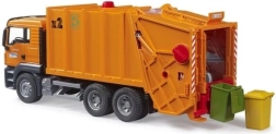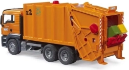 Bruder MAN TGS е проектиран с внимание към реалистичните детайли, включително отварящи се врати и въртящ се механизъм за отпадъци.