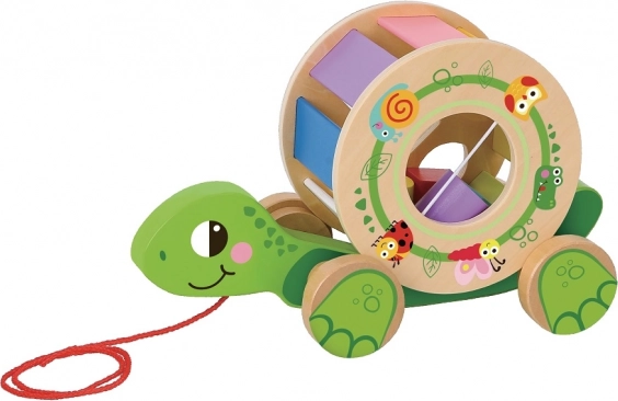 Преживейте радост и учене с тази дърпаща се костенурка, която ще се превърне в чудесен приятел на вашето дете. Тази иновативна играчка служи като сортер и предлага шест отвора за поставяне на различни форми, включително един голям и пет по-малки. Благодарение на връвчицата, разположена отпред, децата могат лесно да я дърпат след себе си и да се наслаждават на моменти, изпълнени с движение.