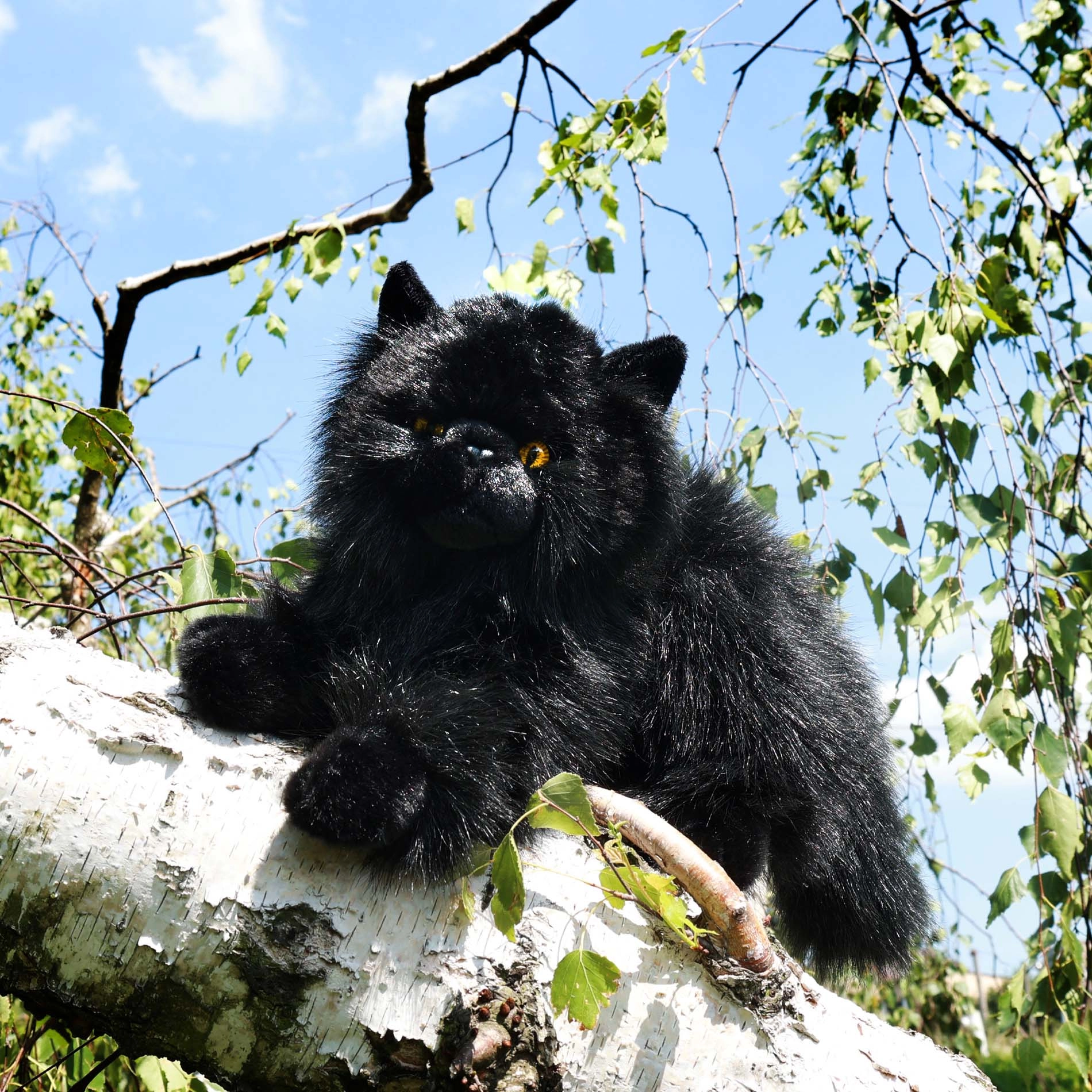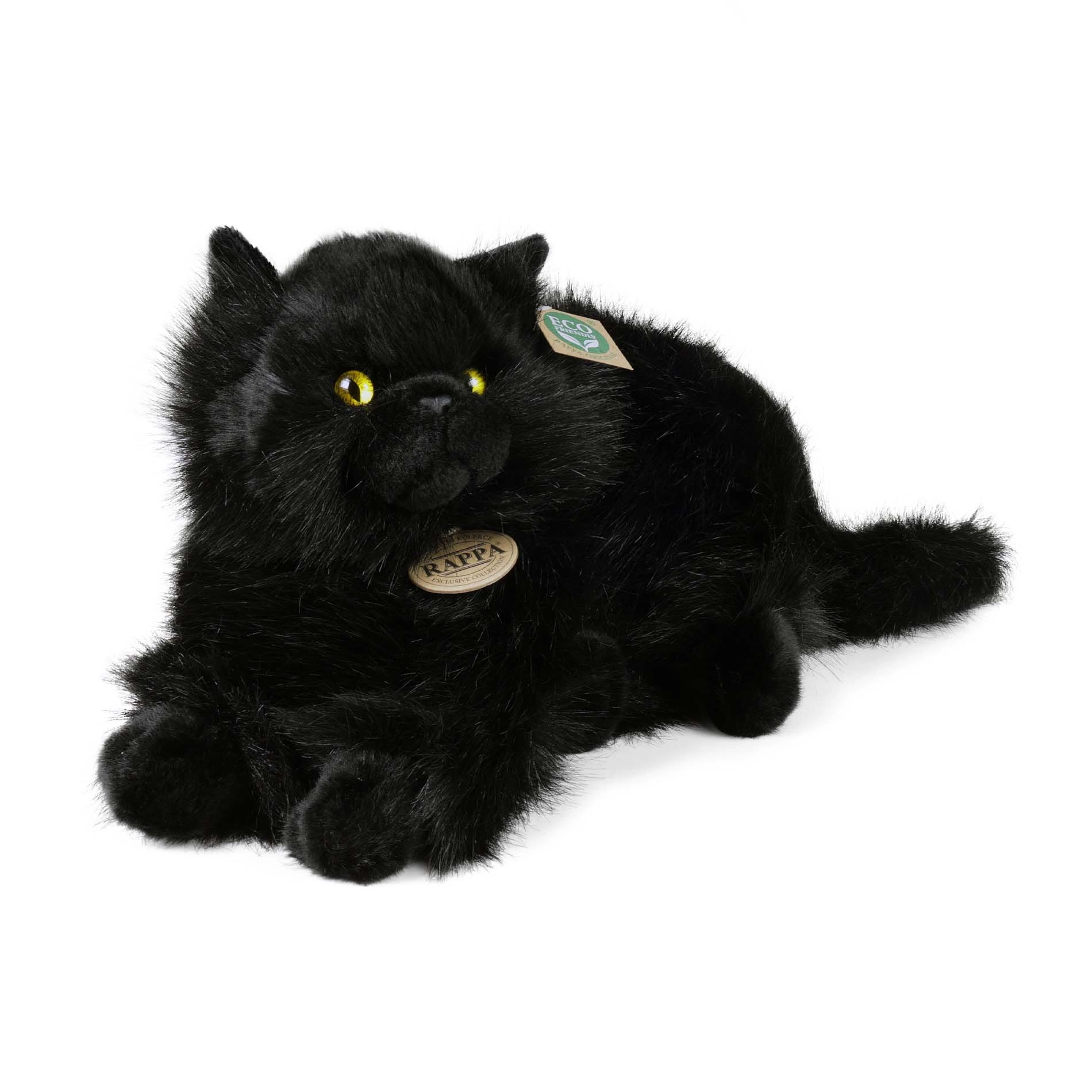 Тази мека черна котка с изразителни жълти очи изглежда като истинска и е страхотна за гушкане, както и като декорация за детската стая. Висококачествени материали и детайлно шиене гарантират дълъг живот дори при честа игра.