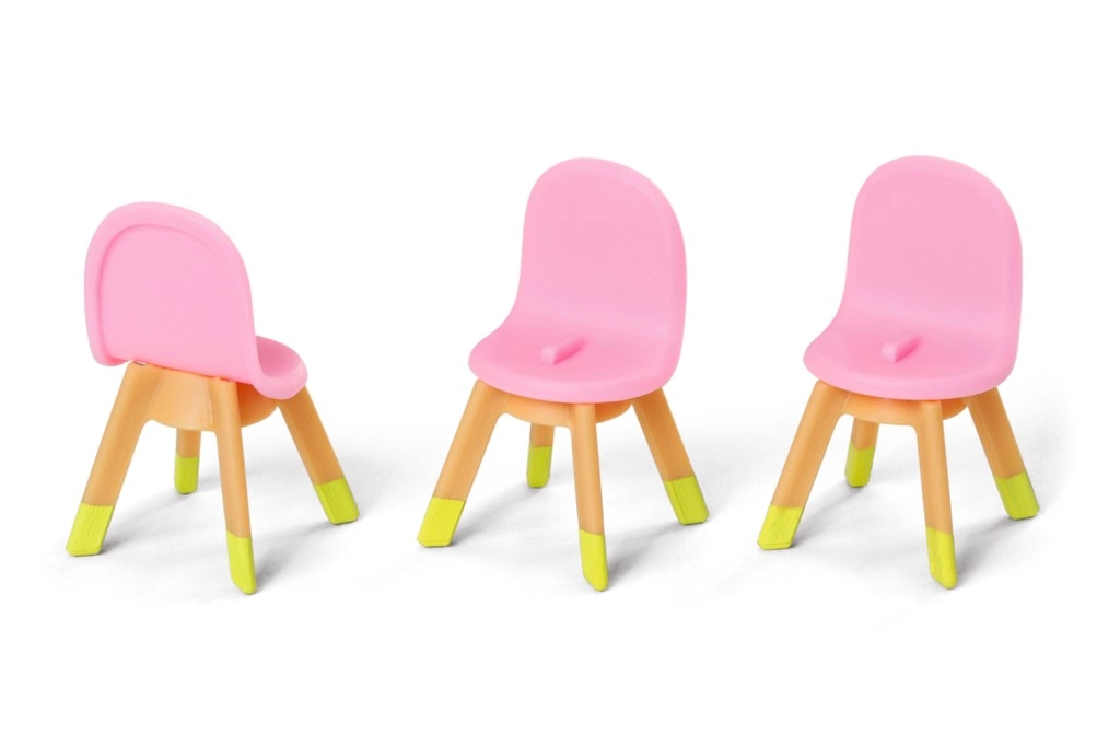 Столчета с розови седалки и леки дървени крачета с неоновожълти накрайници – перфектни за деца.