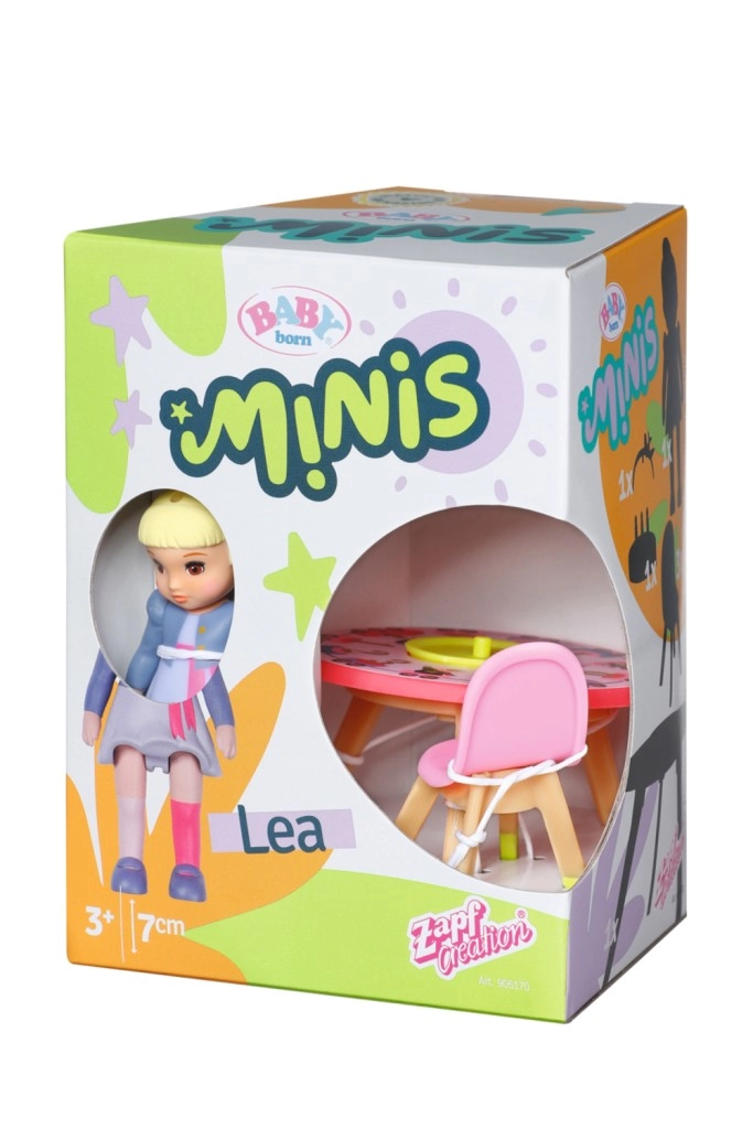 С този вълшебен комплект BABY born Minis децата могат да празнуват рожден ден всеки ден. Масичката е украсена с розова торта, около която децата могат да настанят мини куклата Лея и други фигурки от своята колекция. Всяко столче е проектирано да се вписва в среда, която е едновременно цветна и приятна за детското въображение.