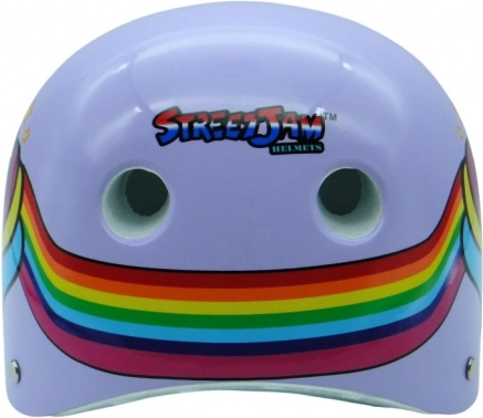 Стилна лилава каска с мотив еднорог за колело, скейтборд и ролери. Предлага 9 вентилационни отвора, подсилена полимерна обвивка, EPS пяна и сертификация EN 1078:2027 за надеждна защита.